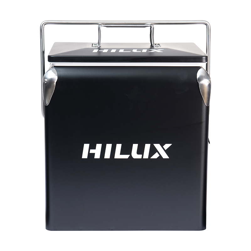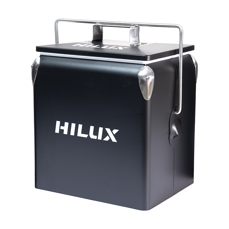 25L Stainless steel outer + pp plastic inner Metal handles Metal lock Hilux logo printed front and on lid
