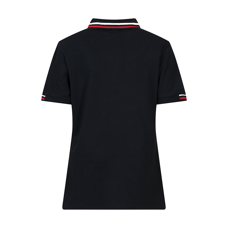 "The GR Ladies’ Black Golf Shirt is a stylish and practical choice for both golf and casual wear. Made from polycotton Lacoste fabric, it features a short-sleeve design with a knitted collar and cuffs. The front TGRSA rubber badge adds a sporty touch, while the shirt’s sleek black colour ensures it pairs easily with any outfit."