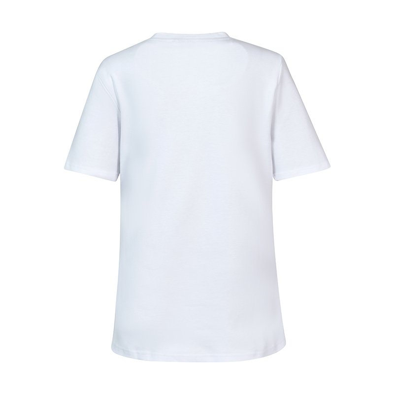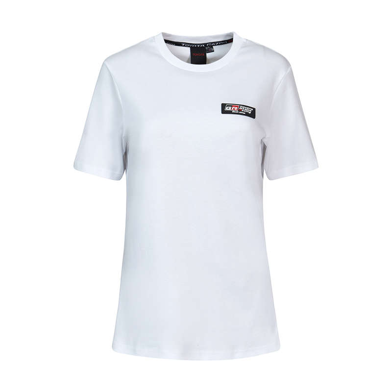 "The GR Ladies’ White T-shirt combines style and comfort with its 100% combed interlock cotton fabric. This shirt features a front rubber badge, knitted cuffs and a sublimated neck lining for a modern finish. A great choice for casual wear, it offers both a chic and relaxed fit."
