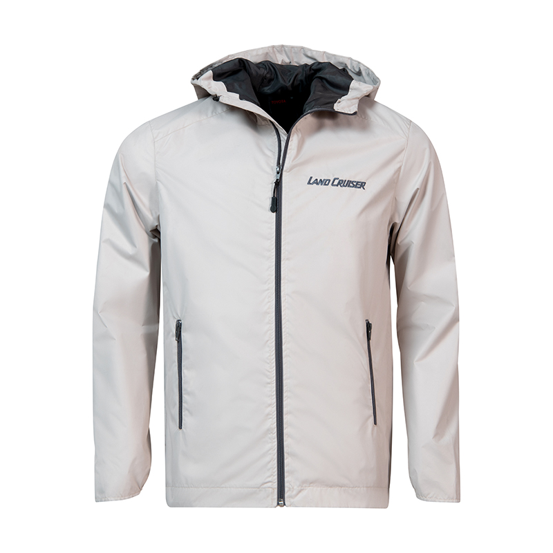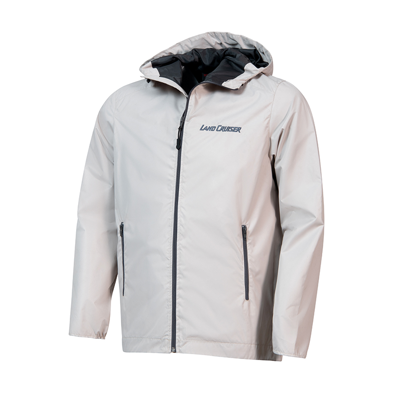 145gsm 100% Supertex polyester Superfine lining Waterproof up to 3000mm Seam sealant Front zip pockets Land Cruiser rubber zip toggle Front Land Cruiser embroidered Cord with adjustable barrel toggles