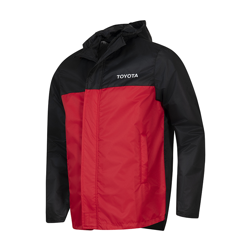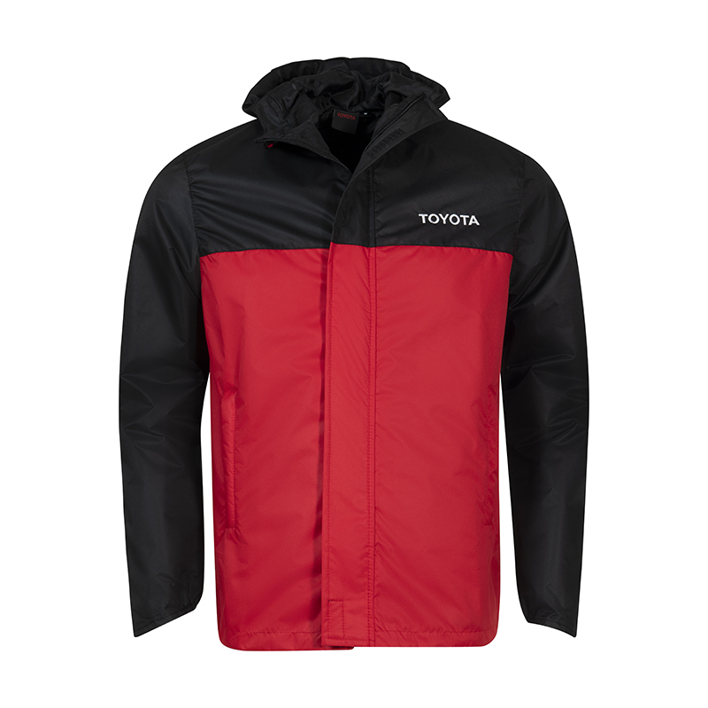 145gsm 100% Supertex polyester Superfine lining Waterproof up to 3000mm Seam sealant Front zip pockets Toyota rubber zip toggle Front Toyota embroidered Cord with adjustable barrel toggles