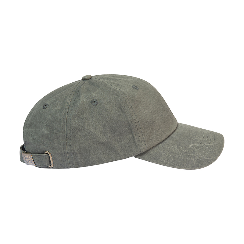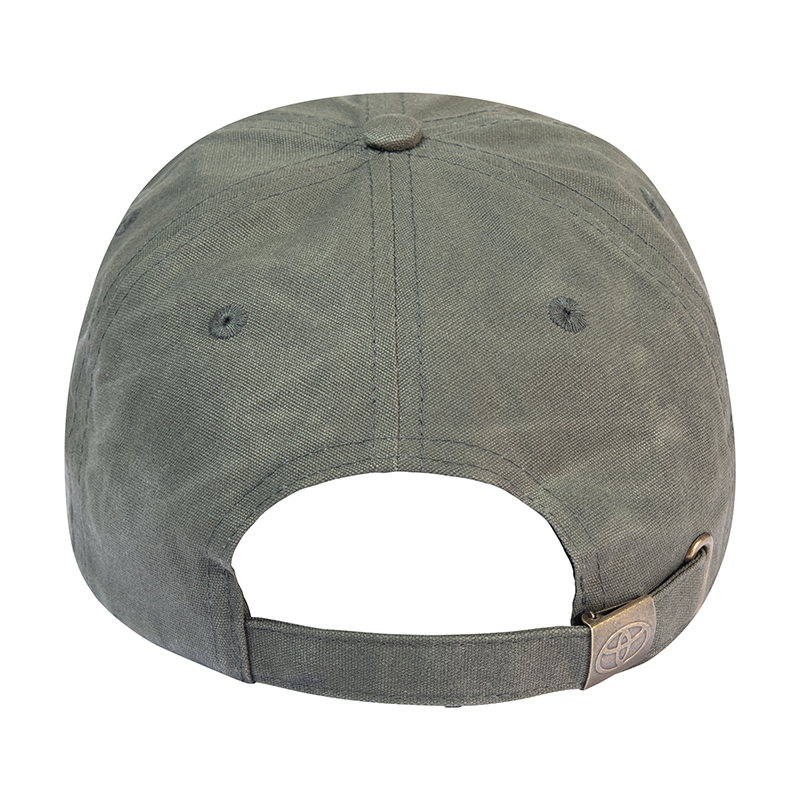 "6 panel baseball cap. Wax canvas fabric. Bottle opener on under peak. Branded gunmetal clasp back adjuster . OSFM, adjustable."