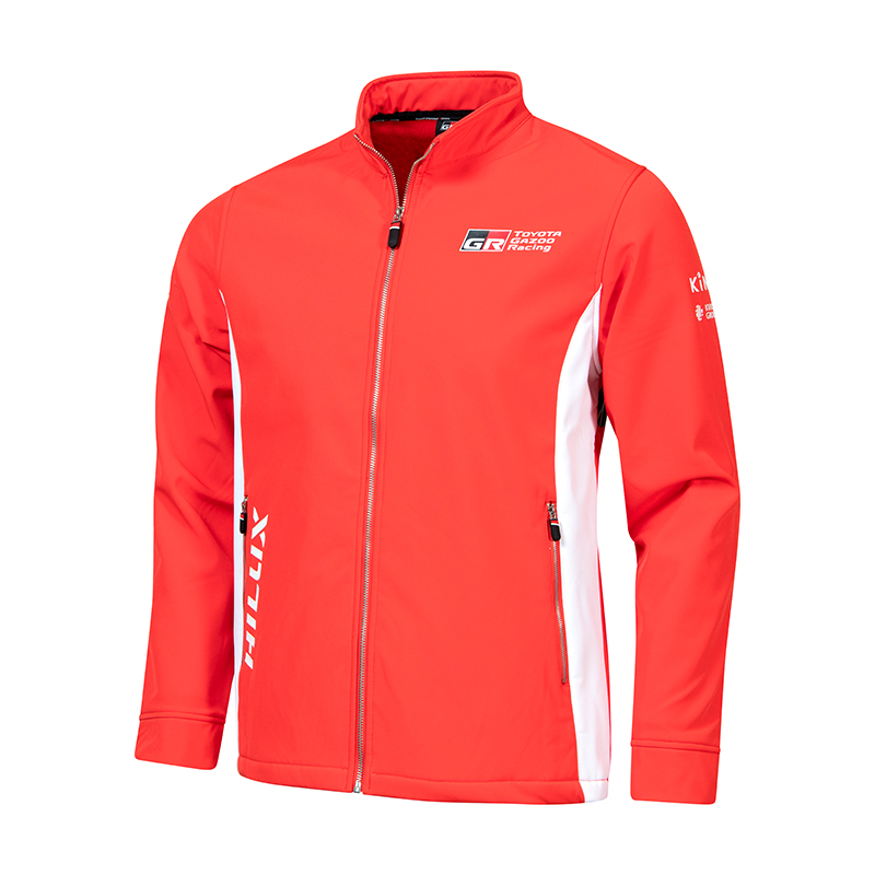 The TOYOTA GAZOO Racing Rally Raid Team Softshell Jacket provides unmatched comfort and sophisticated style. Its features include a robust full metal zip, two interior slip pockets and a dynamic GR print on the back, high-quality fleece lining and elastic cuffs. The jacket also showcases distinct branded neck tape, zip pulls, and prominent team and sponsor logos, enhanced by white panel detailing. It is an essential attire for racing aficionados and style-conscious individuals, highlighting its importance as a significant style statement.